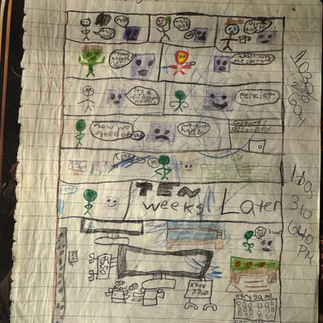 You eventually start working two jobs again, dad's girlfriend helps us to quit drinking after she finds a bottle of vodka stashed in our closet, and we get a gym membership. We are motivated by some of our coworkers and start working on a series, Rooted Dream Adventures, which helps with that creative spark we felt like we were missing. It started on sticky notes for all of my coworkers to see btu then we bring them home and ink over them on our iPad! I know the quality wasn't as detailed as what we used to be able to draw but I was pretty damned proud of us bud!